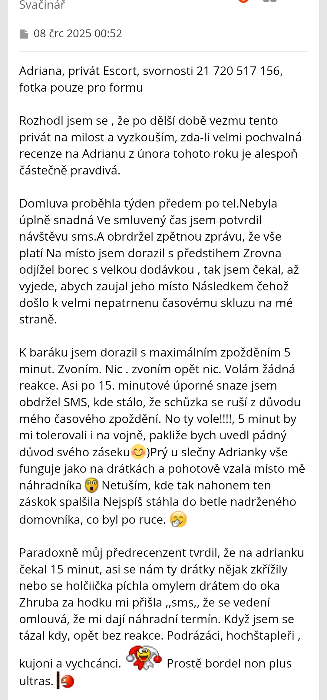 This was my first experience with Privat Escort. During my visit I have seen one other girls for which I would definitely not have paid for, so I agree that not all the girls are worth the 1 hour waiting time, but Adriana is truly beautiful, so I am glad that I was patient enough.